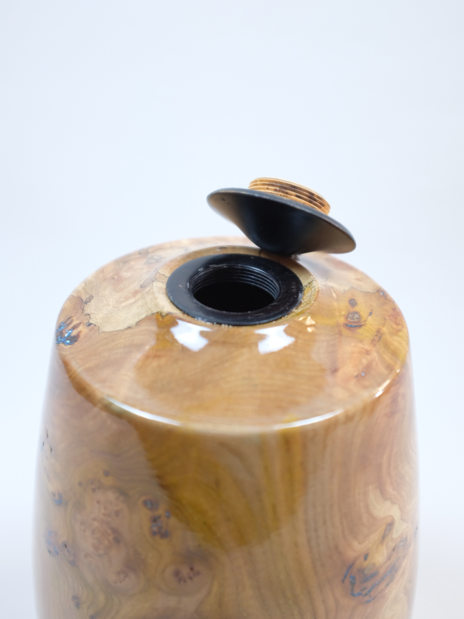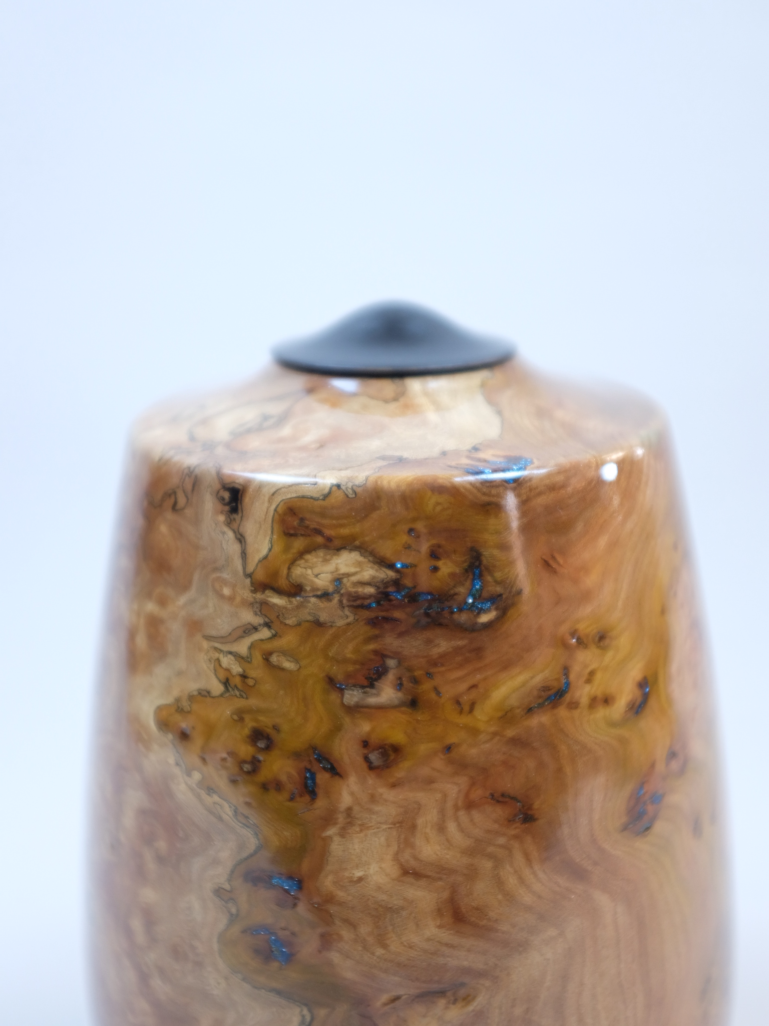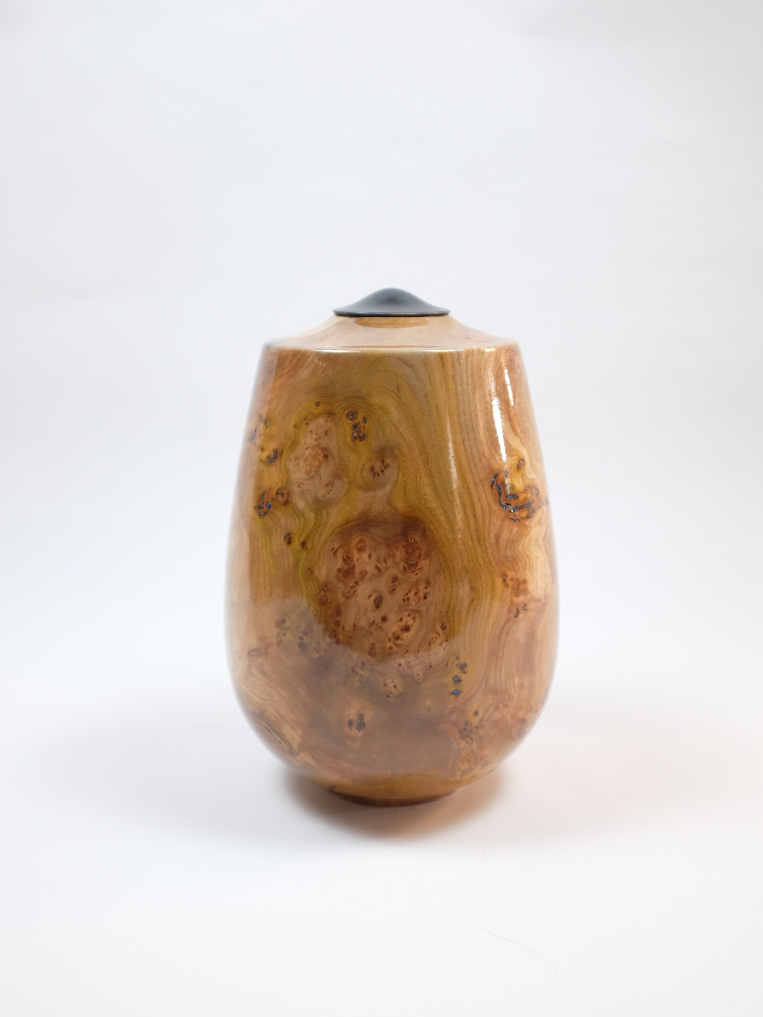 Handmade Wooden Urn: Burr Elm & Ebony Lid